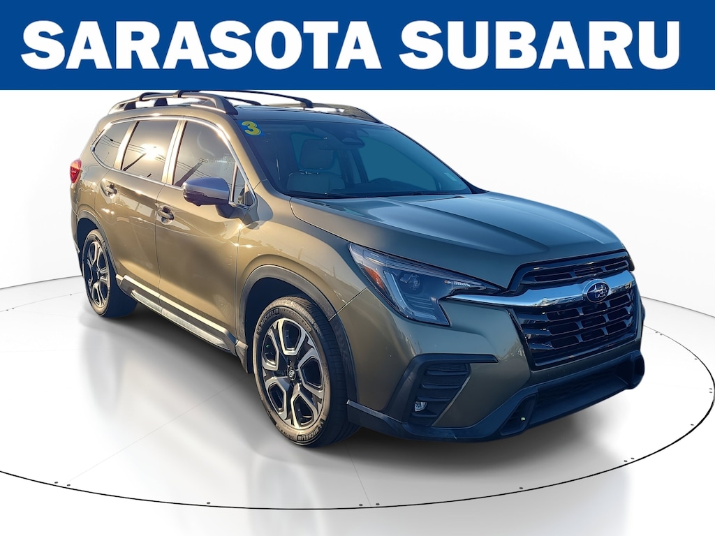THIS VEHICLE INCLUDES THE FOLLOWING FEATURES AND OPTIONS: Technology Package (Cabin Connect, Radio: Subaru STARLINK 11.6" Multimedia Nav System, Retractable Cargo Area Cover, Satin Chrome Power-Folding Exterior Power Mirrors, and Surround View Monitor System), Subaru Certified Pre-Owned Certified, 20" Dk Gray Alloy w/Machine Finish Wheels, 3rd row seats: bench, Active Cruise Control, Auto High-beam Headlights, Auto-dimming Rear-View mirror, Automatic temperature control, Front dual zone A/C, Front fog lights, Garage door transmitter: HomeLink, Heated Front Bucket Seats, Heated steering wheel, Memory seat, Perforated Leather-Trimmed Upholstery, Power Liftgate, Rear air conditioning, Remote keyless entry, Security system, Traction control, 4-Wheel Disc Brakes, 6 Speakers, ABS brakes, Air Conditioning, Alloy Wheels, AM/FM radio: SiriusXM, Axle Ratio: 4.44, Brake assist, Bumpers: body-color, Delay-off headlights, Driver door bin, Driver vanity mirror, Dual front impact airbags, Dual front side impact airbags, Electronic Stability Control, Emergency communication system: STARLINK Safety and Security (Subscription Required), Exterior Parking Camera Rear, Four wheel independent suspension, Front anti-roll bar, Front Bucket Seats, Front Center Armrest, Front reading lights, Fully automatic headlights, Heated door mirrors, Heated front seats, Heated rear seats, HVAC memory, Illuminated entry, Knee airbag, Leather Shift Knob, Leather steering wheel, Low tire pressure warning, Occupant sensing airbag, Outside temperature display, Overhead airbag, Overhead console, Panic alarm, Passenger door bin, Passenger vanity mirror, Power door mirrors, Power driver seat, Power passenger seat, Power steering, Power windows, Radio data system, Radio: Subaru STARLINK 11.6" Multimedia Plus System, Rear anti-roll bar, Rear reading lights, Rear window defroster, Rear window wiper, Reclining 3rd row seat, Speed control, Speed-sensing steering, Split folding rear seat, Spoiler, STARLINK/Apple CarPlay/Android Auto, Steering wheel mounted audio controls, Tachometer, Telescoping steering wheel, Tilt steering wheel, Trip computer, Turn signal indicator mirrors, and Variably intermittent wipers.