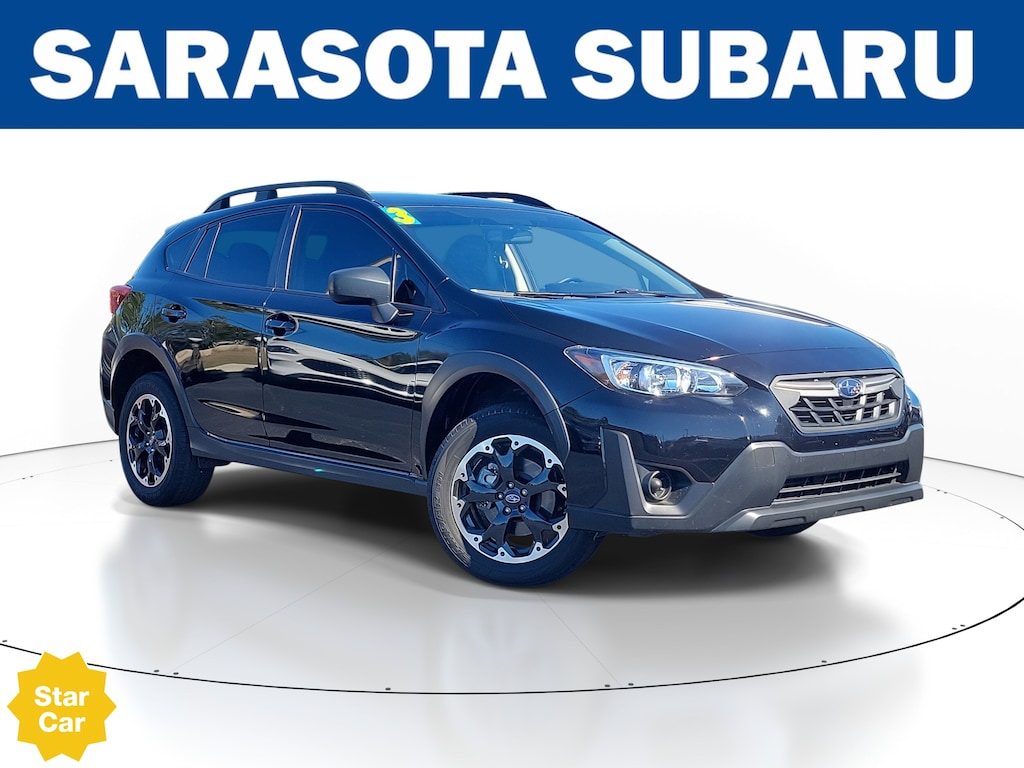 THIS VEHICLE INCLUDES THE FOLLOWING FEATURES AND OPTIONS: Subaru Certified Pre-Owned Certified, ABS brakes, Active Cruise Control, Alum Alloy Blk w/Machine Finish Wheels, Automatic temperature control, Cloth Upholstery, Electronic Stability Control, Illuminated entry, Low tire pressure warning, Radio: Subaru STARLINK 6.5" Multimedia System, Rear Bumper Cover, Remote keyless entry, Security system, Traction control, 3.90 Axle Ratio, 4 Speakers, 4-Wheel Disc Brakes, Air Conditioning, Alloy Wheels, AM/FM radio, Anti-whiplash front head restraints, Brake assist, Bumpers: body-color, Driver door bin, Driver vanity mirror, Dual front impact airbags, Dual front side impact airbags, Exterior Parking Camera Rear, Four wheel independent suspension, Front anti-roll bar, Front Bucket Seats, Front Center Armrest, Front reading lights, Knee airbag, Occupant sensing airbag, Outside temperature display, Overhead airbag, Overhead console, Panic alarm, Passenger door bin, Passenger vanity mirror, Power door mirrors, Power steering, Power windows, Radio data system, Rear anti-roll bar, Rear window defroster, Rear window wiper, Speed control, Speed-sensing steering, Split folding rear seat, Spoiler, STARLINK/Apple CarPlay/Android Auto, Steering wheel mounted audio controls, Tachometer, Telescoping steering wheel, Tilt steering wheel, Trip computer, and Variably intermittent wipers.