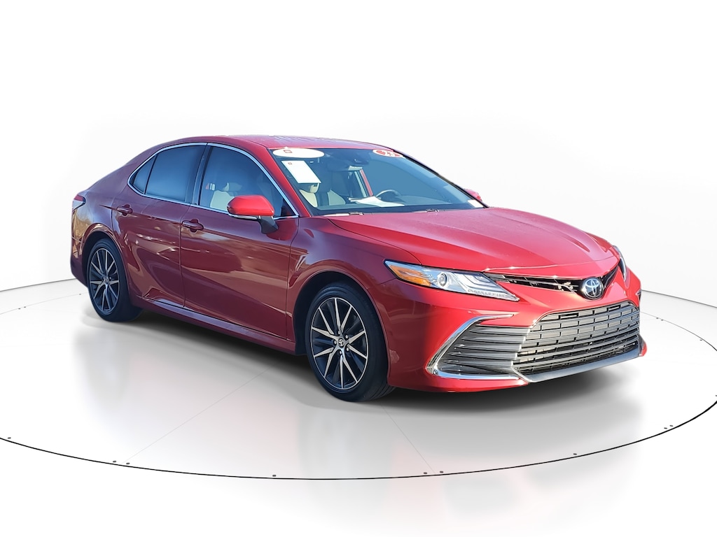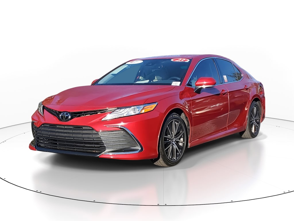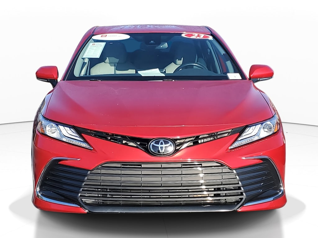 2023 Toyota Camry 2.5L I4 DOHC 16V Supersonic Red/Midnight Black Metallic Ash Leather. This vehicle also comes equipped with: Toyota Gold Certified Certified, Ash Leather, 4-Wheel Disc Brakes, 6 Speakers, 8.0J x 18 Alloy Wheels, ABS brakes, Air Conditioning, Alloy wheels, AM/FM radio: SiriusXM, Apple CarPlay/Android Auto, Auto High-beam Headlights, Auto-dimming Rear-View mirror, Automatic temperature control, Brake assist, Bumpers: body-color, Delay-off headlights, Driver door bin, Driver vanity mirror, Dual front impact airbags, Dual front side impact airbags, Electronic Stability Control, Emergency communication system: Safety Connect (1-year trial), Exterior Parking Camera Rear, Four wheel independent suspension, Front anti-roll bar, Front Bucket Seats, Front Center Armrest, Front dual zone A/C, Front reading lights, Fully automatic headlights, Garage door transmitter: HomeLink, Heated door mirrors, Heated front seats, Illuminated entry, Knee airbag, Leather steering wheel, Low tire pressure warning, Multi-Stage Heated Front Bucket Seats, Occupant sensing airbag, Outside temperature display, Overhead airbag, Overhead console, Panic alarm, Passenger door bin, Passenger vanity mirror, Perforated Leather Seat Trim, Power door mirrors, Power driver seat, Power passenger seat, Power steering, Power windows, Radio data system, Radio: Audio Plus, Rear anti-roll bar, Rear reading lights, Rear seat center armrest, Rear side impact airbag, Rear window defroster, Remote keyless entry, Security system, Speed control, Speed-sensing steering, Split folding rear seat, Steering wheel mounted audio controls, Tachometer, Telescoping steering wheel, Tilt steering wheel, Traction control, Trip computer, Turn signal indicator mirrors, and Variably intermittent wipers. FWD 8-Speed Automatic Recent Arrival! Priced below KBB Fair Purchase Price! Odometer is 14878 miles below market average! 27/38 City/Highway MPG