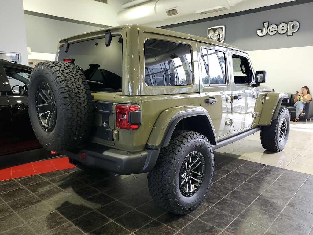 This Vehicle comes equipped with: Convenience Group (Heated Front Seats, Heated Steering Wheel, and Universal Garage Door Opener), Quick Order Package 24Y Rubicon X (Acoustic Front Seat Area Carpet, Acoustic Laminated Front Door Glass, Alpine Premium Audio System, Body Color 3-Piece Hard Top, Body Color Rubicon Highline Flare, Freedom Panel Storage Bag, Leather Wrapped Park Brake Handle, Leather Wrapped Shift Knob, MOPAR Hardtop Headliner, MOPAR Hinge-Gate Reinforcement, Nappa Leather Seats, Power 4-Way Driver Lumbar Adjust, Power 4-Way Passenger Lumbar Adjust, Power Adjust 8-Way Driver Seat, Power Adjust 8-Way Front Passenger Seat, Premium Door Trim Panel, Rear Window Defroster, Rear Window Wiper/Washer, Steel Front Bumper, and Steel Rear Bumper), Safety Group (Auto High Beam Headlamp Control, Blind Spot & Cross Path Detection, and ParkSense Rear Park Assist System), Technology Group (12.3 Touchscreen Display, 4G LTE Wi-Fi Hot Spot, Apple CarPlay, Auto-Dimming Rear-View Mirror, Connected Travel & Traffic Services, Connectivity - US/Canada, Google Android Auto, GPS Navigation, HD Radio, Integrated Off-Road Camera, Integrated Voice Command w/Bluetooth, Radio: Uconnect 5 Nav w/12.3 Display, SiriusXM Radio Service, and SiriusXM w/360L), Trailer Tow & Aux Switch Group (Auxiliary Switches and Class II Receiver Hitch), Trailer Tow Prep Package, Xtreme 35 Tire Package (35 Tire Suspension, 97 MPH Vehicle Max Speed Calibration, Anti-Lock 4-Wheel Disc Perf Brakes, and Wheels: 17 x 8 Machined w/Black Pockets), 4-Wheel Disc Brakes, 8 Speakers, ABS brakes, Air Conditioning, Alloy wheels, AM/FM radio: SiriusXM, Apple CarPlay/Android Auto, Automatic temperature control, Aux Battery, Brake assist, Cloth Low-Back Bucket Seats, Compass, Delay-off headlights, Driver door bin, Driver vanity mirror, Dual front impact airbags, Dual front side impact airbags, Electronic Stability Control, Emergency communication system: Jeep Connect, Front anti-roll bar, Front Bucket Seats, Front Center Armrest w/Storage, Front dual zone A/C, Front fog lights, Front reading lights, Fully automatic headlights, Heated door mirrors, Illuminated entry, Integrated roll-over protection, Jeep Trail Rated Kit, Low tire pressure warning, MOPAR All-Weather Floor Mats, Non-Lock Fuel Cap w/o Discriminator, Occupant sensing airbag, Outside temperature display, Overhead airbag, Panic alarm, ParkView Rear Back-Up Camera, Passenger door bin, Passenger vanity mirror, Performance Suspension, Power door mirrors, Power steering, Power windows, Radio data system, Radio: Uconnect 5 w/12.3 Display, Rear anti-roll bar, Rear reading lights, Remote keyless entry, Security system, Speed control, Split folding rear seat, Steering wheel mounted audio controls, Stop-Start Dual Battery System, Tachometer, Telescoping steering wheel, Tilt steering wheel, Traction control, Trip computer, Variably intermittent wipers, Voltmeter, Wheel Flare Extensions, and Wheels: 17 x 7.5 Machined/Painted Black.