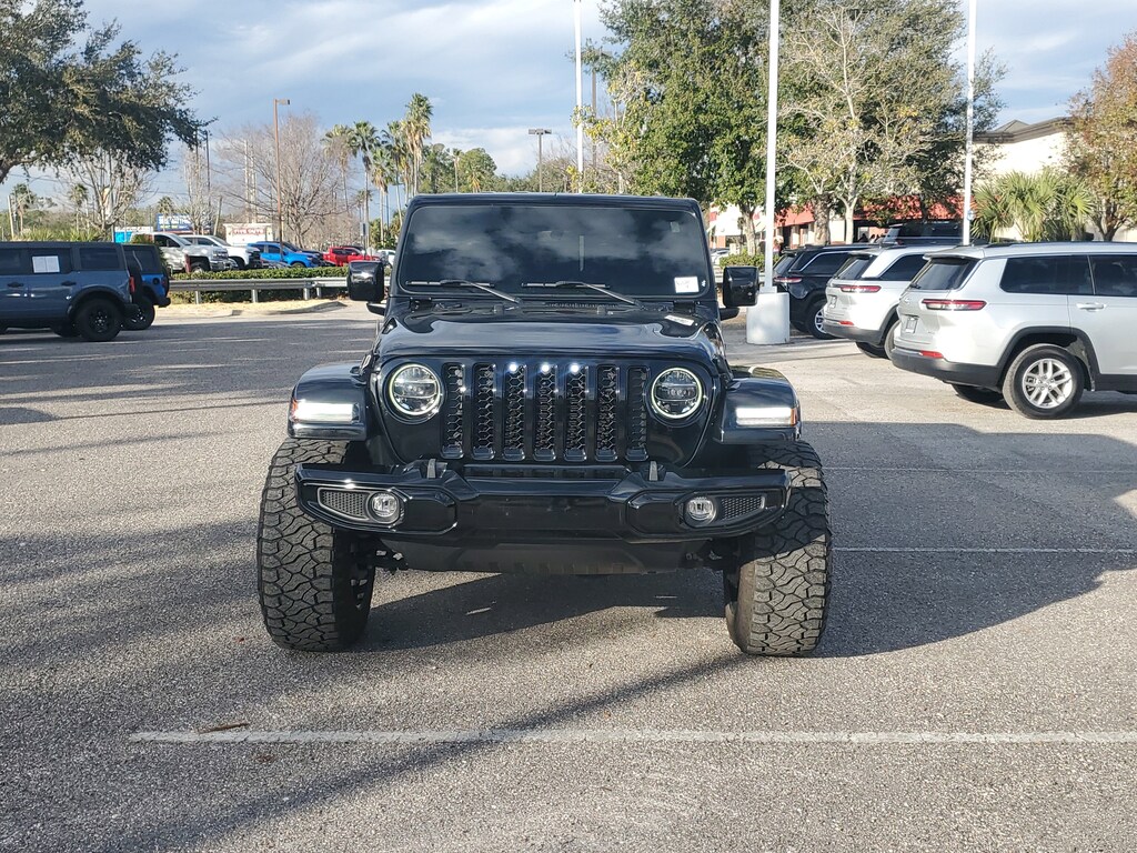 This Vehicle comes equipped with: Cold Weather Group (Heated Front Seats and Heated Steering Wheel), High Altitude Package, LED Lighting Group (Daytime Running Lamps LED Accents, Front LED Fog Lamps, LED Park Turn Lamps, LED Premium Reflector Headlamps, and LED Taillamps), Quick Order Package 24N High Altitude (110 MPH Vehicle Max Speed Calibration, Body Color 3-Piece Hard Top, Body Color Front Bumper, Body Color Grille w/Gloss Black Rings, Body Color Rear Bumper w/Step Pads, Body-Color Door & Tailgate Handles, Bridgestone Brand Tires, Caramel Interior Accents, Dana M210 Wide Front Axle, Dana M220 Wide Rear Axle, Exterior Mirrors w/Supplemental Signals, Freedom Panel Storage Bag, Full Body Color Fender Flares, Full Length Floor Console Premium Armrest, Gray/Black Trail Rated Badge, Jeep Badge, Leather Wrapped Park Brake Handle, Leather Wrapped Shift Knob, Leather-Trimmed Bucket Seats, No Soft Top, Premium Dark Exterior Accents, Rear Armrest w/Cupholder Seat, Rear Sliding Window, Rear Window Defroster, Sport Front Shock Absorbers, Sport Rear Shock Absorbers, Sport Suspension, Wheels: 20" x 8" Gloss Black Aluminum, and Wrapped I/P Bezel w/Caramel Stitch), Safety Group (Blind Spot & Cross Path Detection and ParkSense Rear Park Assist System), 3.73 Rear Axle Ratio, 4-Wheel Disc Brakes, 9 Speakers, ABS brakes, Air Conditioning, Alloy wheels, AM/FM radio: SiriusXM, Apple CarPlay/Android Auto, Auto-dimming Rear-View mirror, Automatic temperature control, Brake assist, Compass, Corning Gorilla Glass, Delay-off headlights, Driver door bin, Driver vanity mirror, Dual front impact airbags, Dual front side impact airbags, Electronic Stability Control, Emergency communication system: SiriusXM Guardian, Front anti-roll bar, Front Bucket Seats, Front Center Armrest w/Storage, Front dual zone A/C, Front fog lights, Front reading lights, Fully automatic headlights, Garage door transmitter, Heated door mirrors, Illuminated entry, Integrated roll-over protection, Leather steering wheel, Low tire pressure warning, MOPAR Spray In Bedliner, Navigation System, Normal Duty Plus Suspension, Occupant sensing airbag, Outside temperature display, Overland Cloth Bucket Seats, Panic alarm, ParkView Rear Back-Up Camera, Passenger door bin, Passenger vanity mirror, Power door mirrors, Power steering, Power windows, Radio data system, Radio: Uconnect 4C Nav w/8.4" Display, Rear anti-roll bar, Rear reading lights, Remote keyless entry, Remote Start System, Security system, Speed control, Split folding rear seat, Steering wheel mounted audio controls, Tachometer, Telescoping steering wheel, Tilt steering wheel, Traction control, Trip computer, Variably intermittent wipers, Voltmeter, and Wheels: 18" x 7.5" Granite Crystal Aluminum.